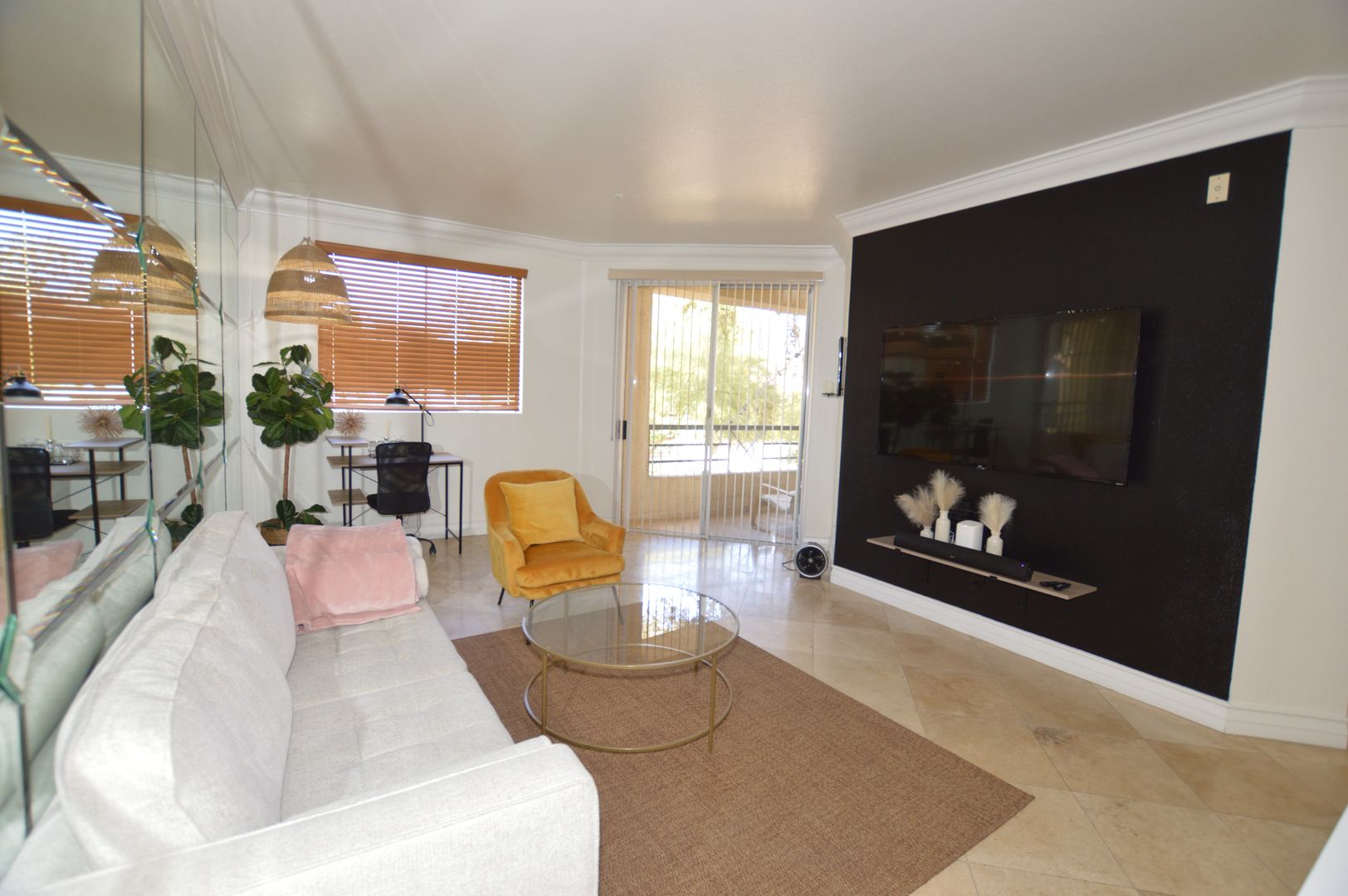 This beautiful newly renovated condo is equipped with all the comforts of home with utilities (Gas, Electric,Internet) included. All new stainless appliances, updated flooring, new furniture, window treatments, WiFi accessible, multiple TVs, in-unit washer/dryer and many community amenities such as 2 pools, 2 hot-tubs, BBQ areas around the pools, sauna, full fitness center, tennis & pickle-ball courts, walk paths and much more.