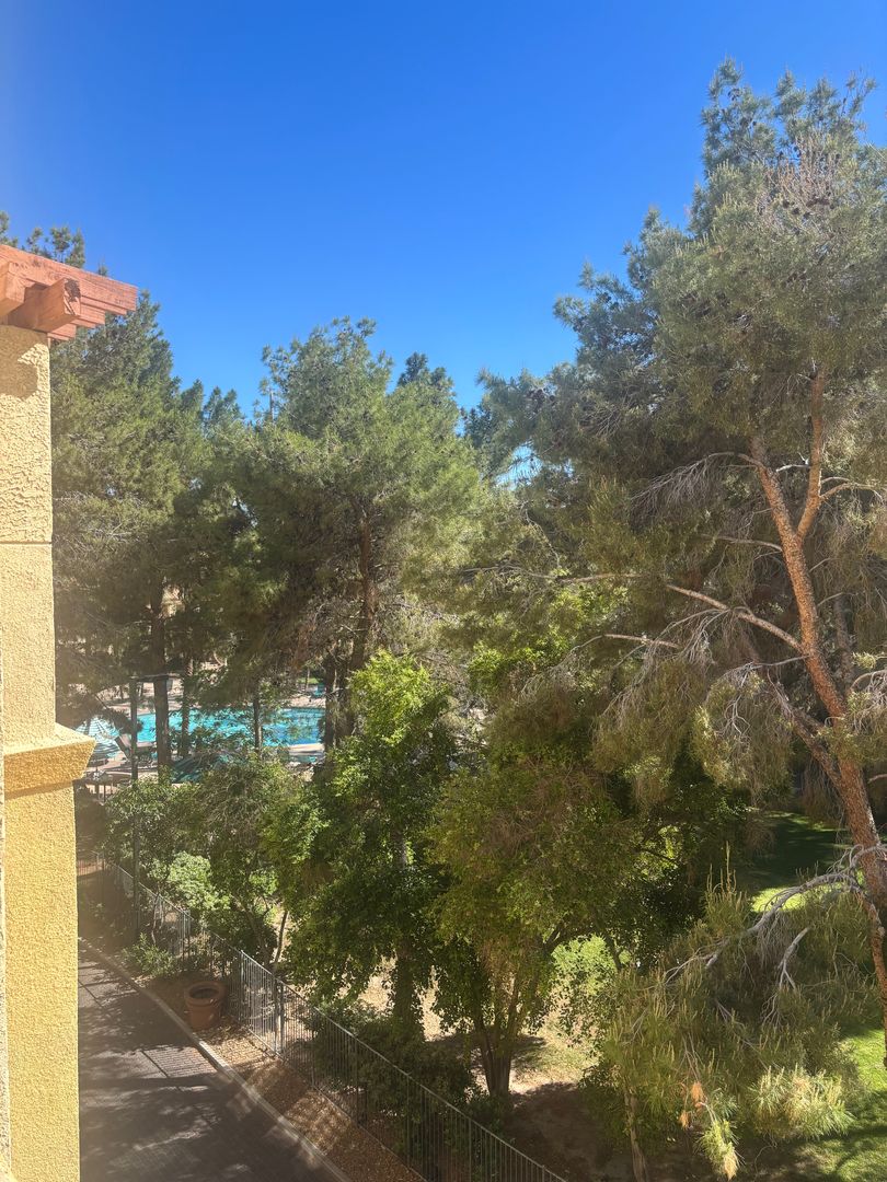 Beautiful Unfurnished, 1 Bd / 1 Ba Condo . Located just 1 1/2 blocks to the heart of the Las Vegas Strip within a 16 Acre Guard Gated Community. Laminate Flooring and Carpet flooring all throughout unit. Large Private Covered Balcony with Main Pool View. This property is fully equipped with a washer and dryer in unit, large closet space and much more.