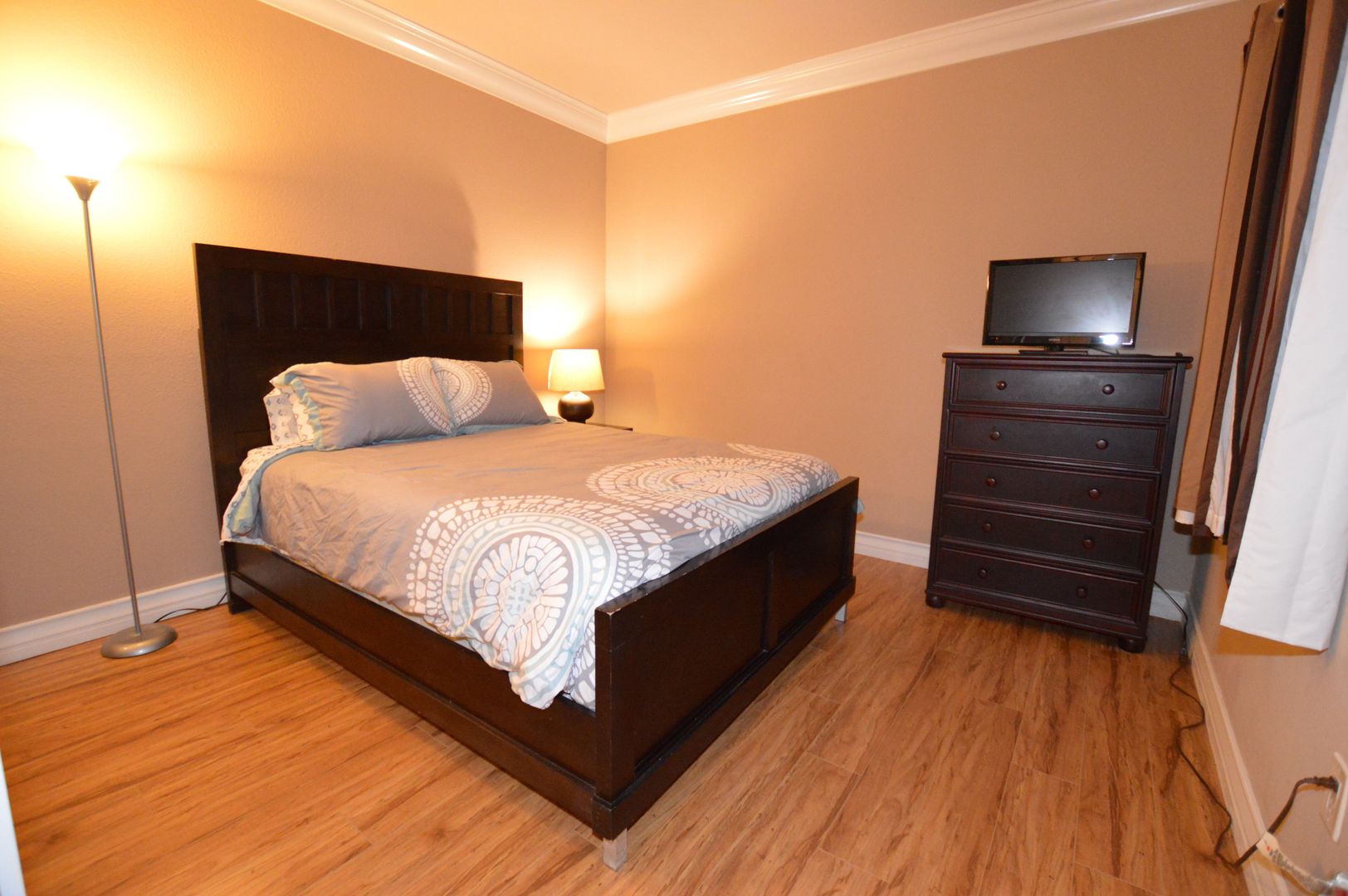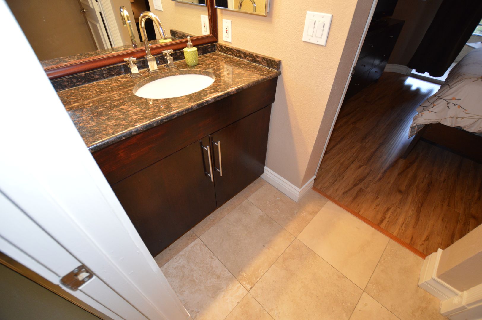 Tile flooring throughout with laminate in bedrooms
