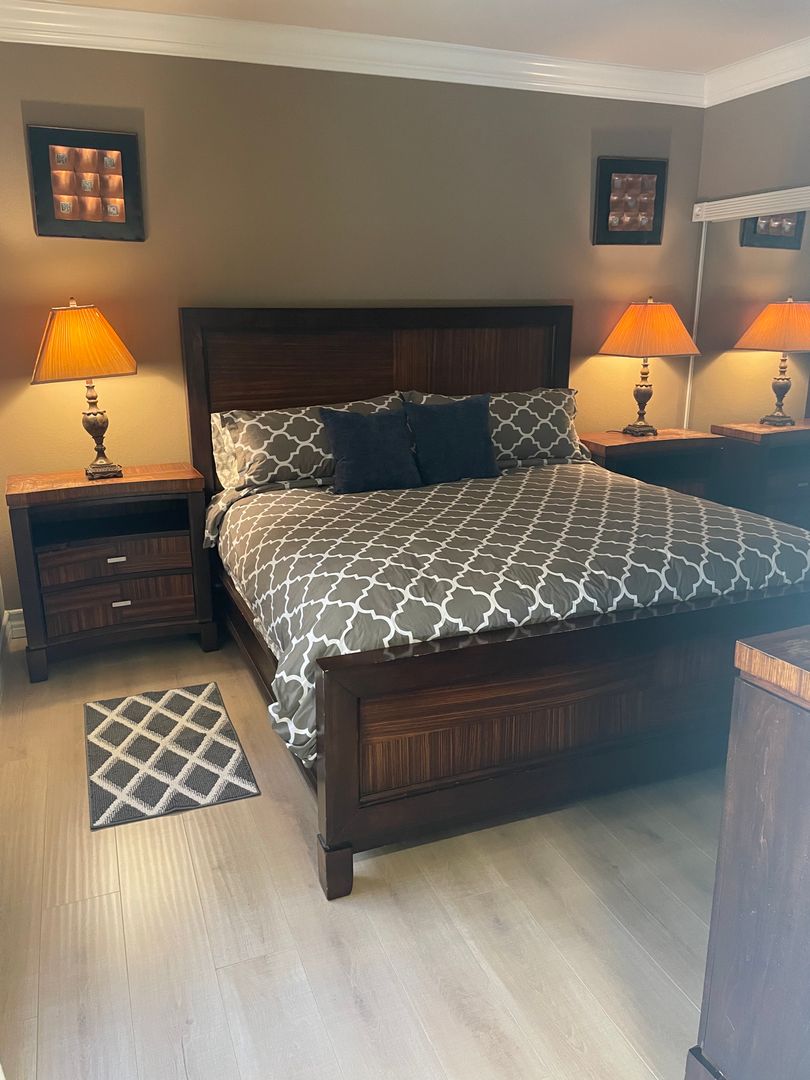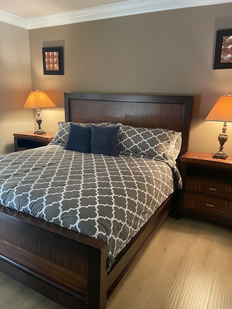 Central Air Condition and Heat, deep closet space great for storage, marble and laminate flooring throughout bedroom/closet area, Crown Molding, Washer and Dryer inside condo.