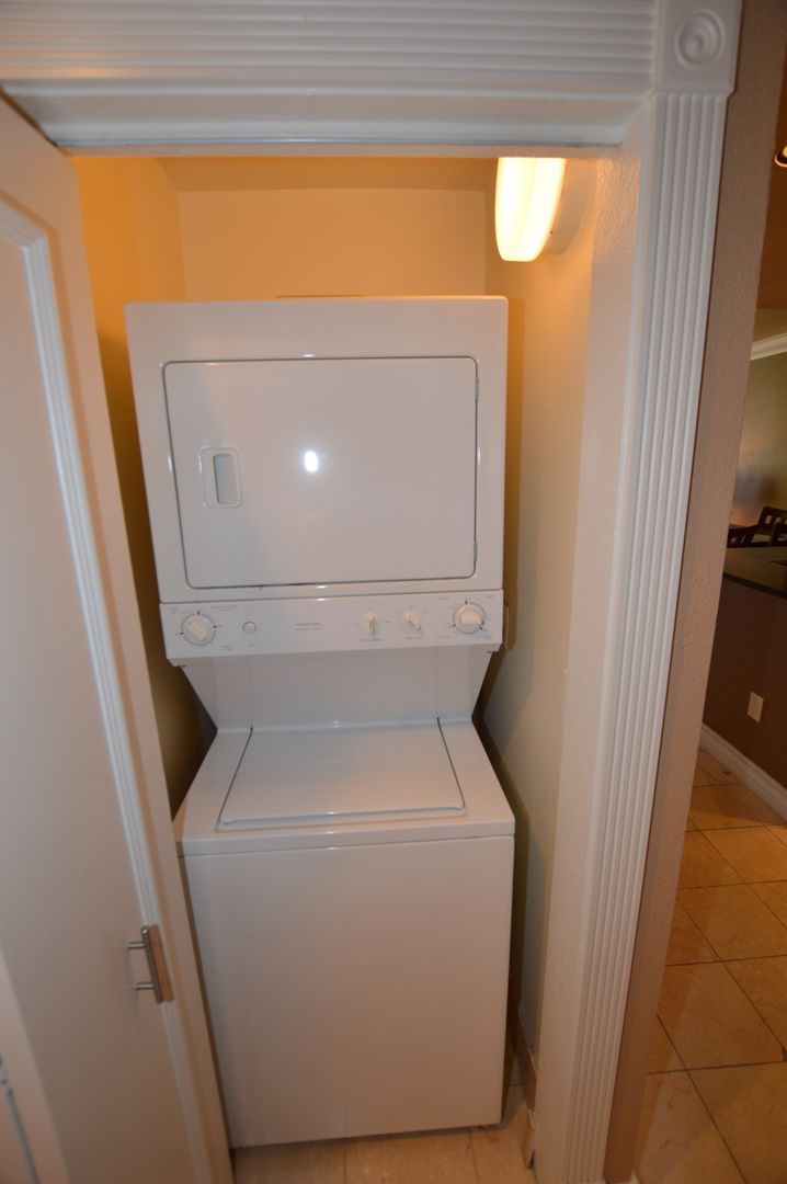 Central air condition and heat, deep closet space great for storage, crown molding, Marble and carpet flooring throughout unit, balcony accessible from living room and bedroom, cable ready, upgraded doors and hardware, Washer and Dryer inside condo, and much more.
