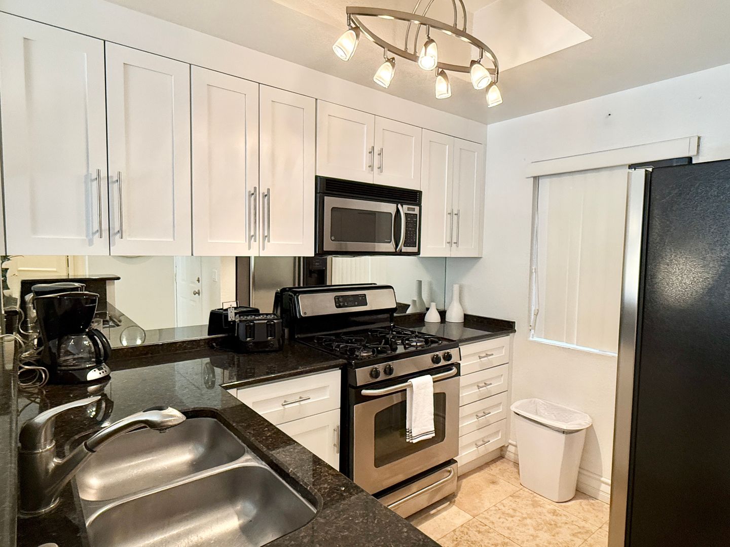 Located in 16 Acre Lushly Landscaped Property Just 1 1/2 Blocks from Main Vegas Strip, unit is equipped with granite counter tops, stainless steel Refrigerator, Range, Microwave and Dishwasher appliances.