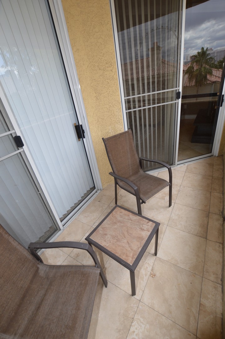 Fully Furnished 2 Bd / 2 Ba Luxury Top Floor Condo with amazing Strip view located within Meridian private Residences Community - 1 1/2 Blocks from Main Strip. Located in 16 Acre Lushly Landscaped Property. Unit has vaulted ceilings, gas fireplace in living area, Stainless Steel appliances etc.